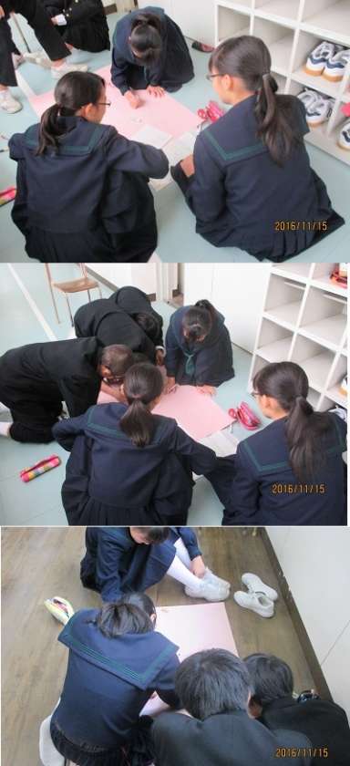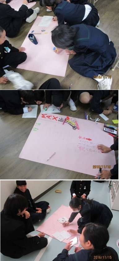 11月15日(火)1時間目に1年生は活動班で先週の校外学習のまとめとして壁新聞の製作に取り組みました。