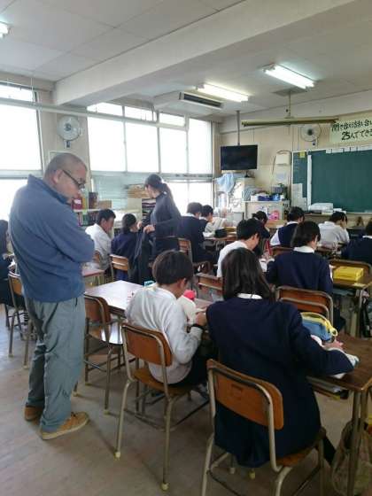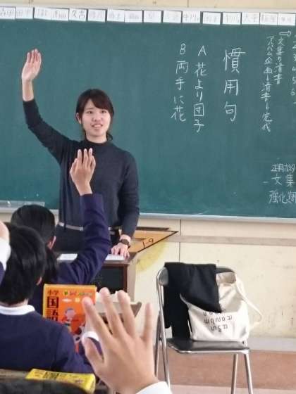 東田辺小6年1組の子どもたちは国語の「慣用句」について中学校の国語科の先生から学びました。