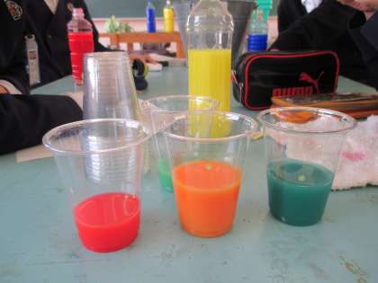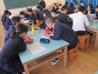 東田辺小6年2組の子どもたちは美術の学習をしました。「色をつくろう」を主題に中学校の美術科の先生と楽しく様々な色をつくるのにチャレンジしました。
