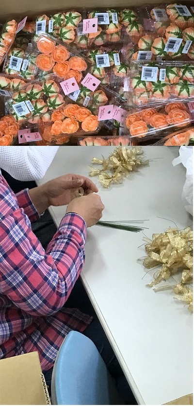 もし、お時間がある3年生の保護者のみなさま、ぜひコサージュをつくりにお越しください。お待ちしております。