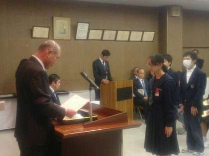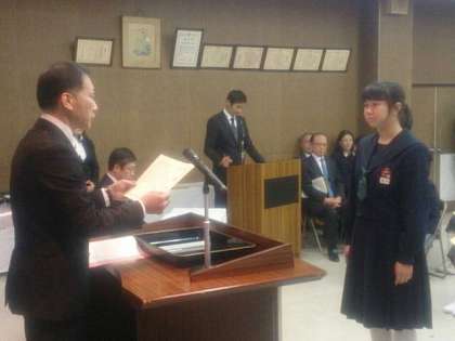 国税庁と全国納税貯蓄組合連合会主催で「税についての作文」コンテストが行われ、本校も3年生の田中さん、谷さん、道本さんの作品が表彰されました。