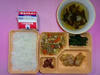 今日の給食では、干しずいきを炒め煮にして使用しています。