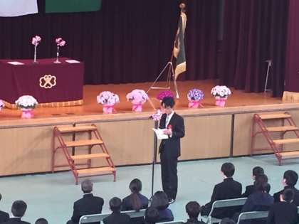 続いて、一年生所属の先生の紹介です。原則3年間、この先生から学んでいきます。そして、保護者代表の方からのご挨拶があり、無事、入学式を挙行できました。