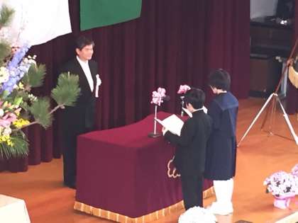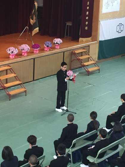 藤澤PTA会長から、祝辞をいただきました。続いて在校生代表・生徒会長による歓迎の言葉、そして新入生代表が、初々しく挨拶をしてくれました。