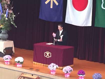 国家・校歌斉唱が行われ、学校長による式辞が読み上げられました。