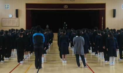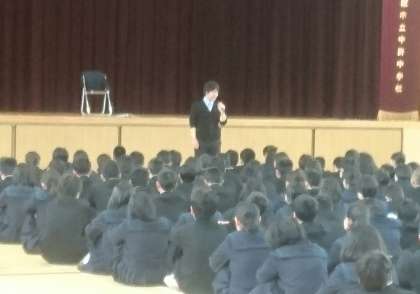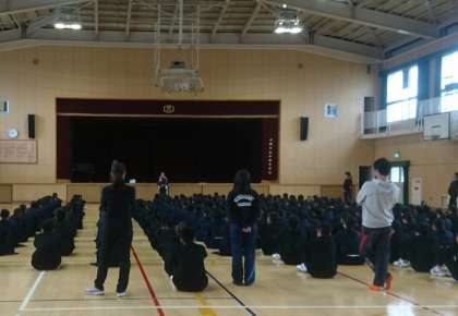 本日は、学年ごとに体育館にて、学年集会を行なっています。