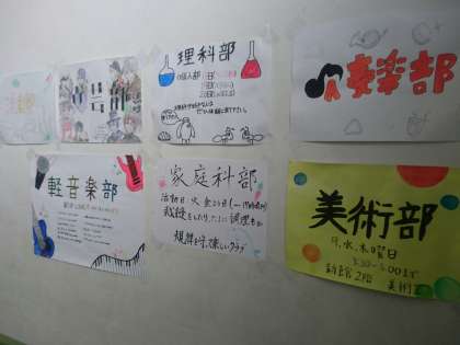 北館・一年生校舎に部活動紹介ポスターを貼っています。