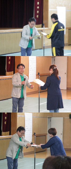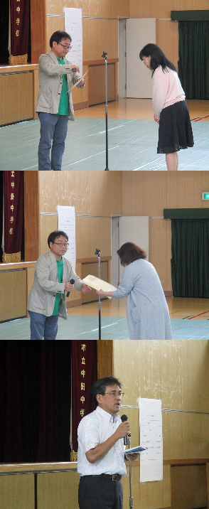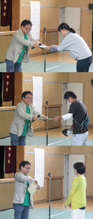 学校活動をお手伝いいただく各委員会の委員長さんに委嘱状が手渡されました。また、元気アップ地域本部長の石田さんより、協力依頼のお話もありました。