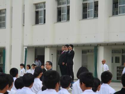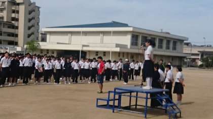 本日の全校集会で、昨日から来ている、教育実習生3名を紹介、あいさつをしてもらいました。中野中学の卒業生で、しっかり学んでいただきたいと思います。