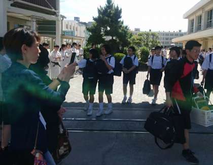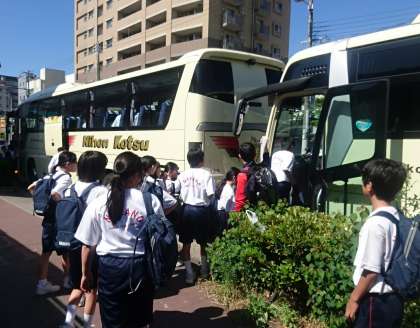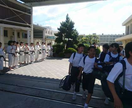 少林寺拳法部の先輩たちに見送られ、いよいよ一泊移住のスタートです。
