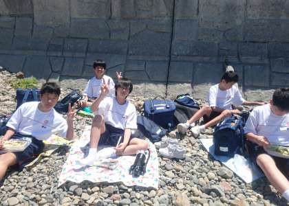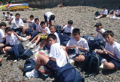 無事到着、まずは海辺でお弁当を広げます。