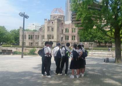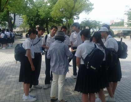 班に分かれ、ガイドさんにお話を伺いながら碑巡りをしています。