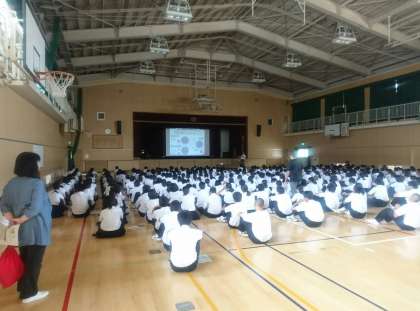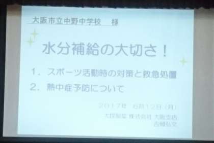 6月12日(月)5時間目、1.2年生対象に大塚製薬様をお招きして、「熱中症予防セミナー」を開催しました。