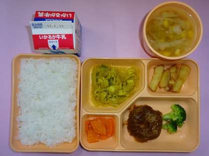 献立名 ・チーズインハンバーグ、ブロッコリー