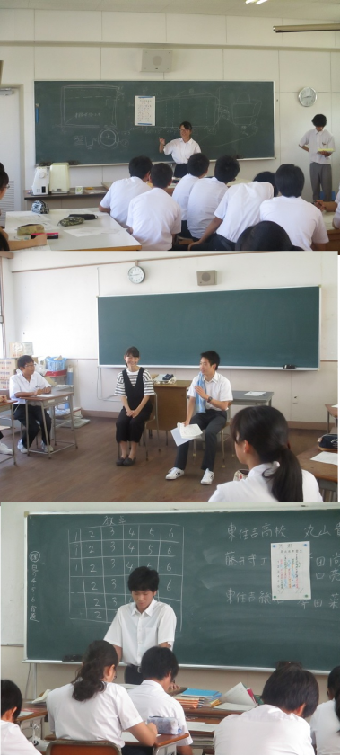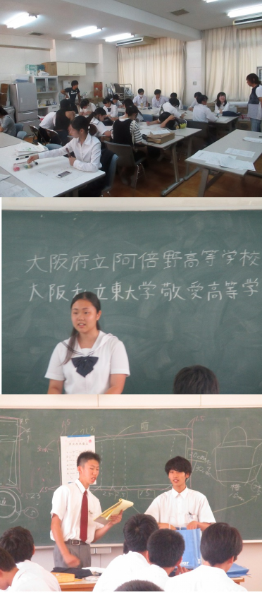 生野高校・天王寺高校・清水谷高校・ビジネスフロンティア高校・藤井寺工科高校・工芸高校・農芸高校・松原高校・阪南高校・東住吉総合高校・阪南高校・阿倍野高校・近畿大学付属高校・上宮高校・東大阪大敬愛高校・四条畷学園高校・浪商高校・東住吉高校の17校20名の先輩が来てくれています。中でも東住吉高校は、中野中学の先輩の都合がつかなかったので相談したところ、生徒会から2人来てくれました。ありがとうございます。