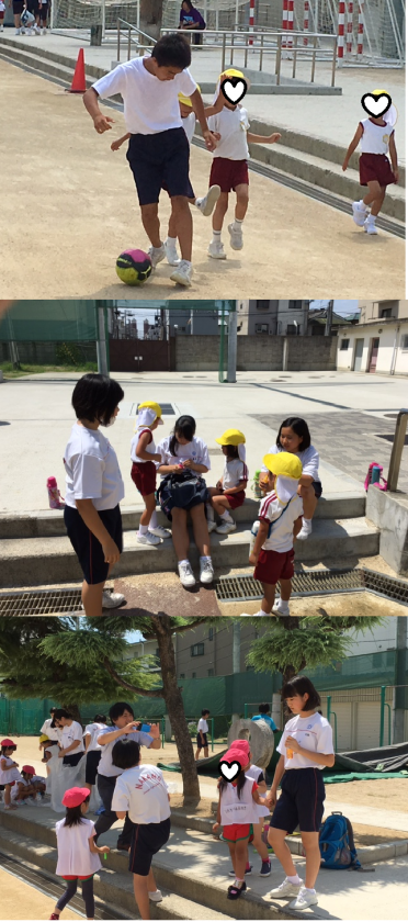用意した、風船、ボール、シャボン玉、折り紙などで、園児とふれあい、とても優しい気持ちになったとともに、コミュニケーションの難しさも学びました。