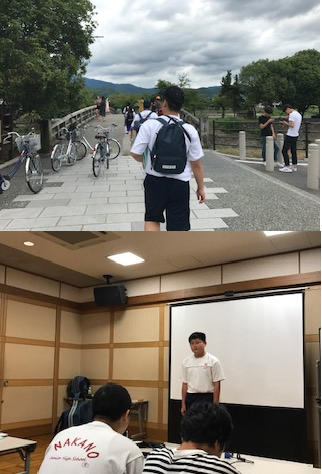 昼食を終えて、学校紹介があり日頃の活動内容などを発表した後で渡月橋に移動しました。