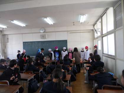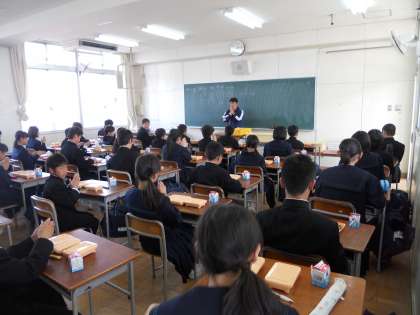 4月9日(水)より1年生は全員が給食となりました。給食当番の子どもたちが学級の生徒分を受け取り、学級でデリバリー式のお弁当を配布する形態で給食準備を行いました。中学生のみんなは今が心身ともに成長する時期です。給食をしっかりと食べて勉学に励もう!