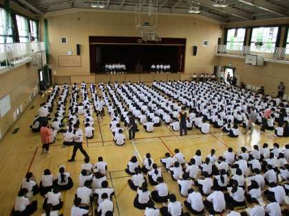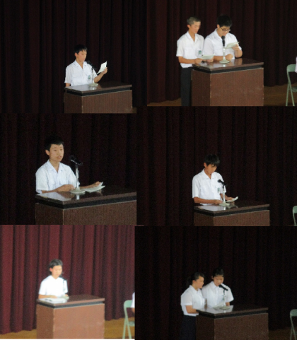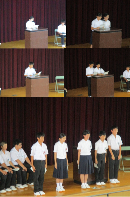 9月11日(月)6限 体育館にて、後記生徒会役員の演説会が行われました。約650名の生徒の前で、立候補者も応援演説者もしっかり話せていました。