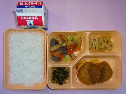 14日の給食では、しらたき(白滝)とも呼ばれる白い糸こんにゃくをすき焼き煮に使用しました。