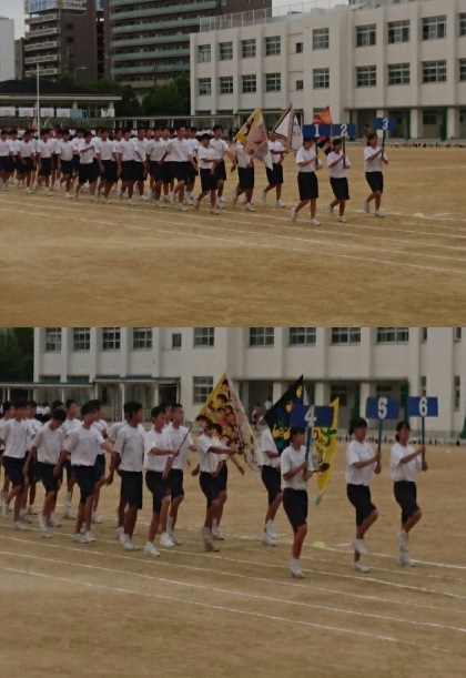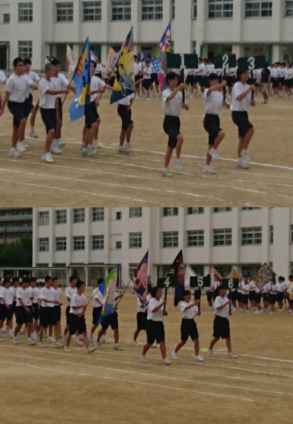 本日は、天候が不安定だったので、5・6時間目に予定していた全体練習を、1・2時間目に変更し、入場行進、校歌斉唱、閉会式などの練習を行いました。練習の終わった3時間目から雨になりましたので、朝のうちにしっかり練習ができ良かったです。