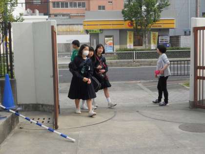 南港通りに面した北門から通学するみんなは元気よく、気持ちよく、先生方とあいさつを交わしていました。「おはよう」「おはようございます」は1日の始まりの言葉です。元気よく、気持ちよくあいさつを交わすことができれば元気があふれてきます。子どもたちと教職員のみんなで明るい雰囲気を作っていきましょう!