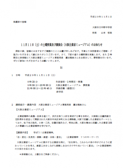 今回は夢授業として、大阪企業家ミュージアムの事務局長さんにお越しいただきます。