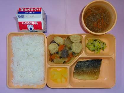 今日の給食では、しょうが、さとう、みりん赤みそを使って煮ものにしています。