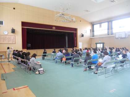5月10日(土)の3時間目・4時間目にPTA予算総会、委員総会、教職員も入って各委員会を体育館で行いました。予算総会ではPTA会計予算書とPTA年間行事予定の報告がありました。委員総会では各委員会の委員長さんに委嘱状が渡されました。また、各委員会では自己紹介をはじめ、年間の活動予定について話し合われました。