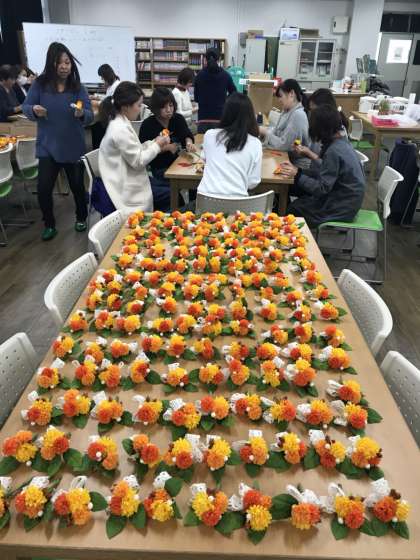 12月2日(土)図書室にて、3年生の保護者が集まられ、卒業式に使用する「コサージュ」を作ってくださいました。