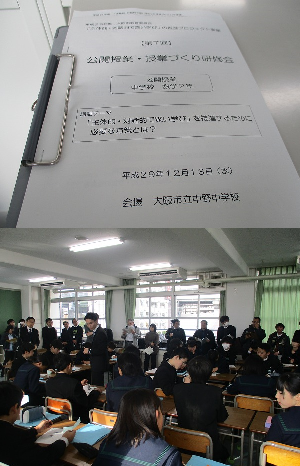 12月13日(水)大阪市で行っている「主体的・対話的で深い学び」の推進プロジェクト事業に認定された本校教諭が公開授業を行い、大阪教育大学の柳本教授が講話及び研究協議を行いました。大阪府全域からたくさんの先生が集まり、研究を行いました。