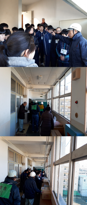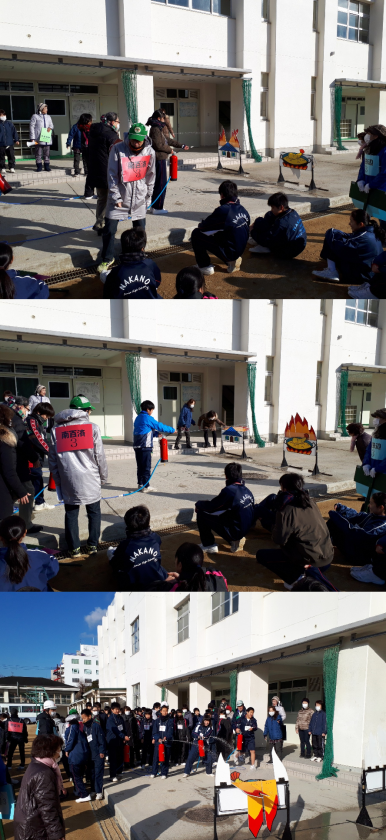 また、消火器の使用訓練、備蓄物の見学、炊き出し見学を行いました。