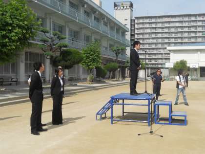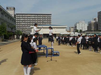 校長先生より、陸上競技部の表彰と教育実習生の先生の紹介がありました。