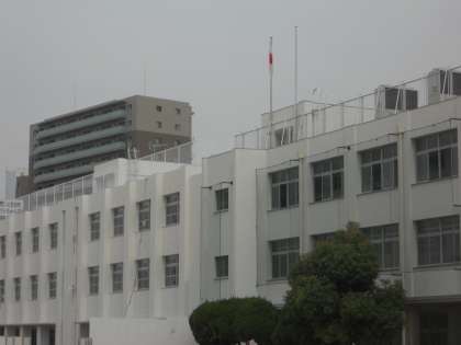 6月末より南館の解体に伴いまして、毎日、国旗を掲揚している掲揚台の場所が北館に変わりました。生徒のみなさん、気づきましたか?
