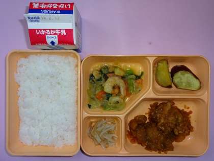 今日の給食では、鶏肉に、しょうが、料理酒、塩で下味をつけ、でんぷんをまぶして油で揚げ、ソースの方は、白ねぎ、砂糖、こい口しょうゆ、酢を合わせ、そしてこれに柚子果汁(ゆずかじゅう)を加えて風味をつけています。