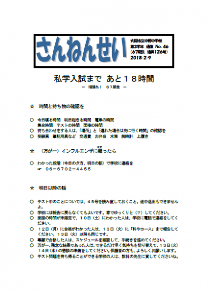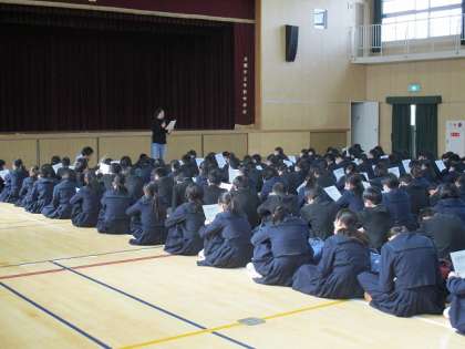2月9日(金)5時間目(一部生徒)及び6時間目に、明日からの私立高校を受験する生徒に向けて、最後の受験指導が行われました。