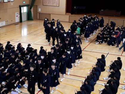 最後は、卒業生が、音楽と拍手に囲まれて退場していきます。