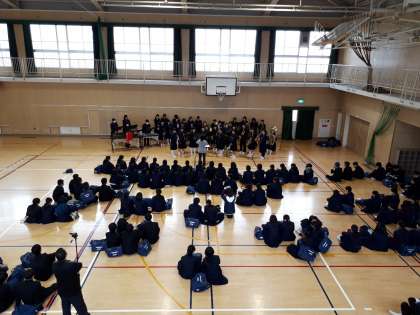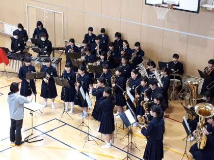 卒業式練習の後は、体育館で吹奏楽部の在校生から3年生に、「贈る」演奏会です。先輩達は温かい気持ちになる事ができました、ありがとう。