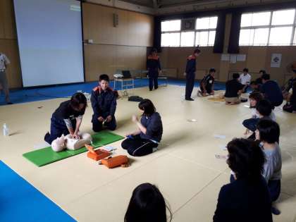 17日、中間テストの後に、東住吉消防署の方に来ていただき、救急救命講習を受けています。
