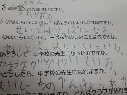 「宿題はありますか?」「テストは難しいですか?」「先生は朝何時ころ来ますか?」
