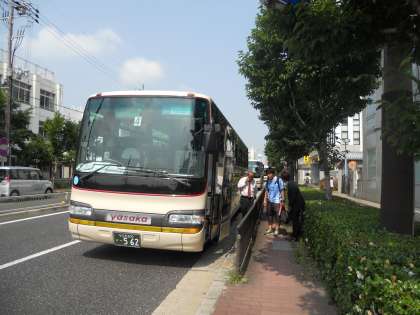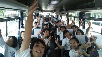 南港通りにバスが停車して、1年生のみんなを出迎えてくれました。1年生はバスに乗車して9時30分出発しました。