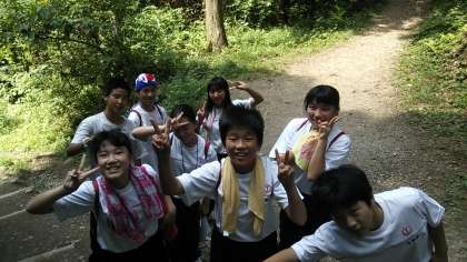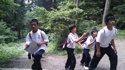オリエンテーリングは、1枚の地図を見ながら各ポイントを探し、その得点と所要時間を競います。子どもたちはグループで協力をしながら各ポイントを探し、展望台を目指して頑張っています。