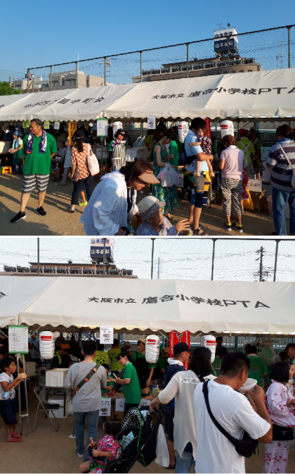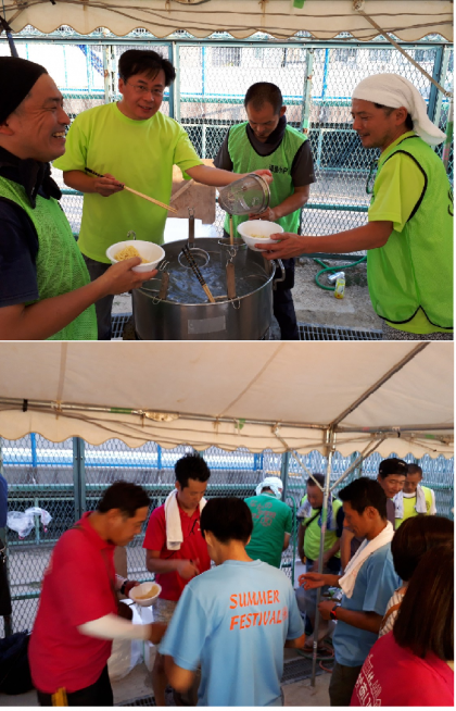 8月4日(土)南百済夏祭りで、五校PTAさんが、五校庵というラーメン店を出店しました。東田辺・南百済・鷹合・湯里の各PTAさんも協力して順番にラーメンを湯がいてくださり、みんなで販売します。