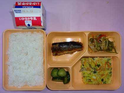 今日の給食では、かつおぶし風味の甘辛い味付けで、骨まで気にせずに食べられるように柔らかく加工された製品を使用しています。