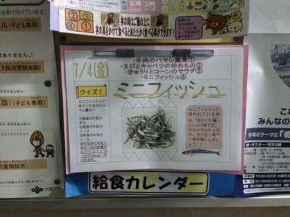 です。ミニフィッシュで摂取できるカルシウムの量は?給食カレンダーに答えは書いています。