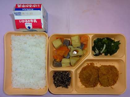 今日の給食では、肩ロースのカツに、大根おろしをしょうゆ、みりんで、味つけしたタレを添えています。