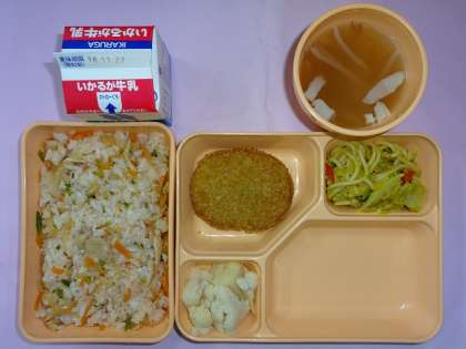献立名 ・チキンライス(ごはん、チキンライスの具)