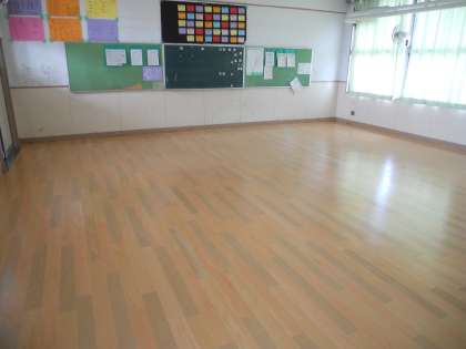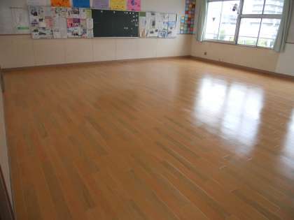 東館の3年生の教室の床の傷みがはげしくなりましたので、夏休みに2クラスが床の張り替えの工事を行いました。とてもきれいに床が整備されています。大切に扱ってください。