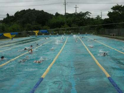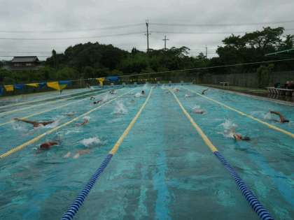 8月4日(月)、水泳部は菫中、梶中と合同練習を行っています。天気は曇り空ですが、子どもたちは元気いっぱいに泳いでいます。練習頑張ってください。