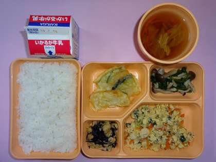 今日の給食では、ブナシメジと合わせて砂糖、しょうゆで和えています。